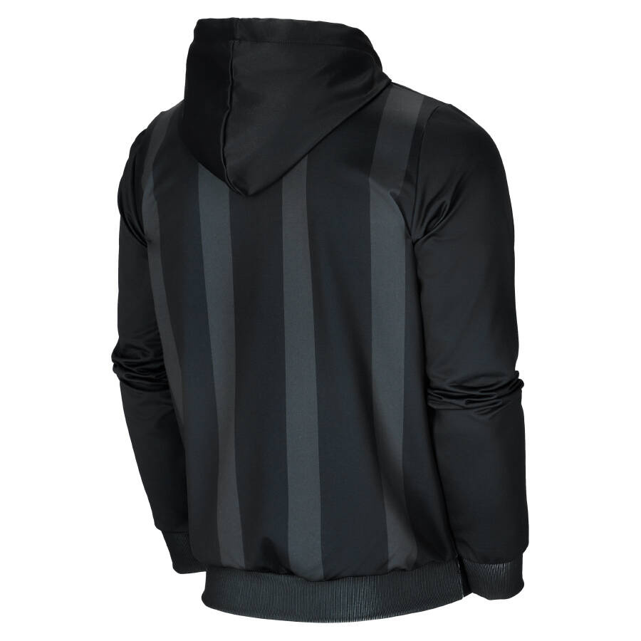 Kolor czarny przełamują szare pasy.
