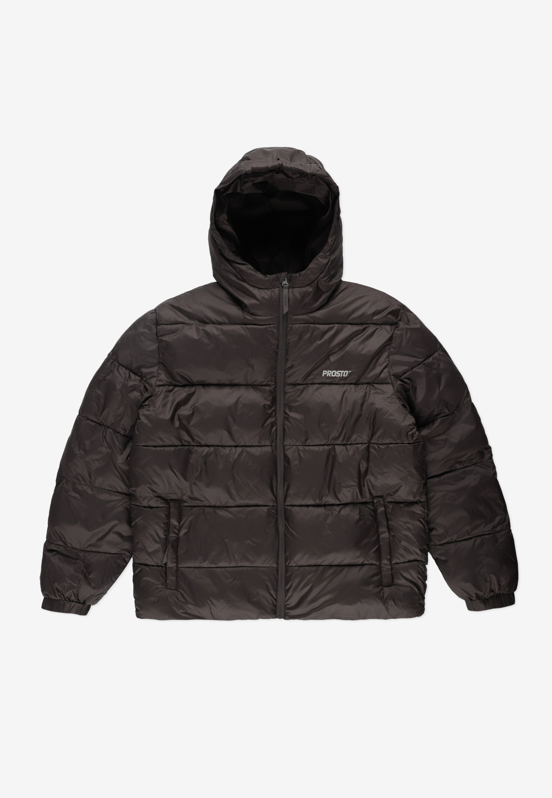Puffer Jacket 404 Dark Brown  – zimowa kurtka puchowa Prosto w głębokiej czerni. Uszyta z wytrzymałego nylonu, została wypełniona syntetycznym puchem, który skutecznie izoluje przed zimnem. Dzięki elastycznym ściągaczom w dolnej części i mankietach dobrze dopasowuje się do sylwetki, a odblaskowe detale i logotypy nadają jej nowoczesny, funkcjonalny charakter. Dwie boczne kieszenie zapinane na zamek sprawiają, że bez problemu schowasz drobiazgi, a wysoka stójka osłania przed wiatrem. To połączenie minimalistycznego designu i praktycznego zimowego komfortu.