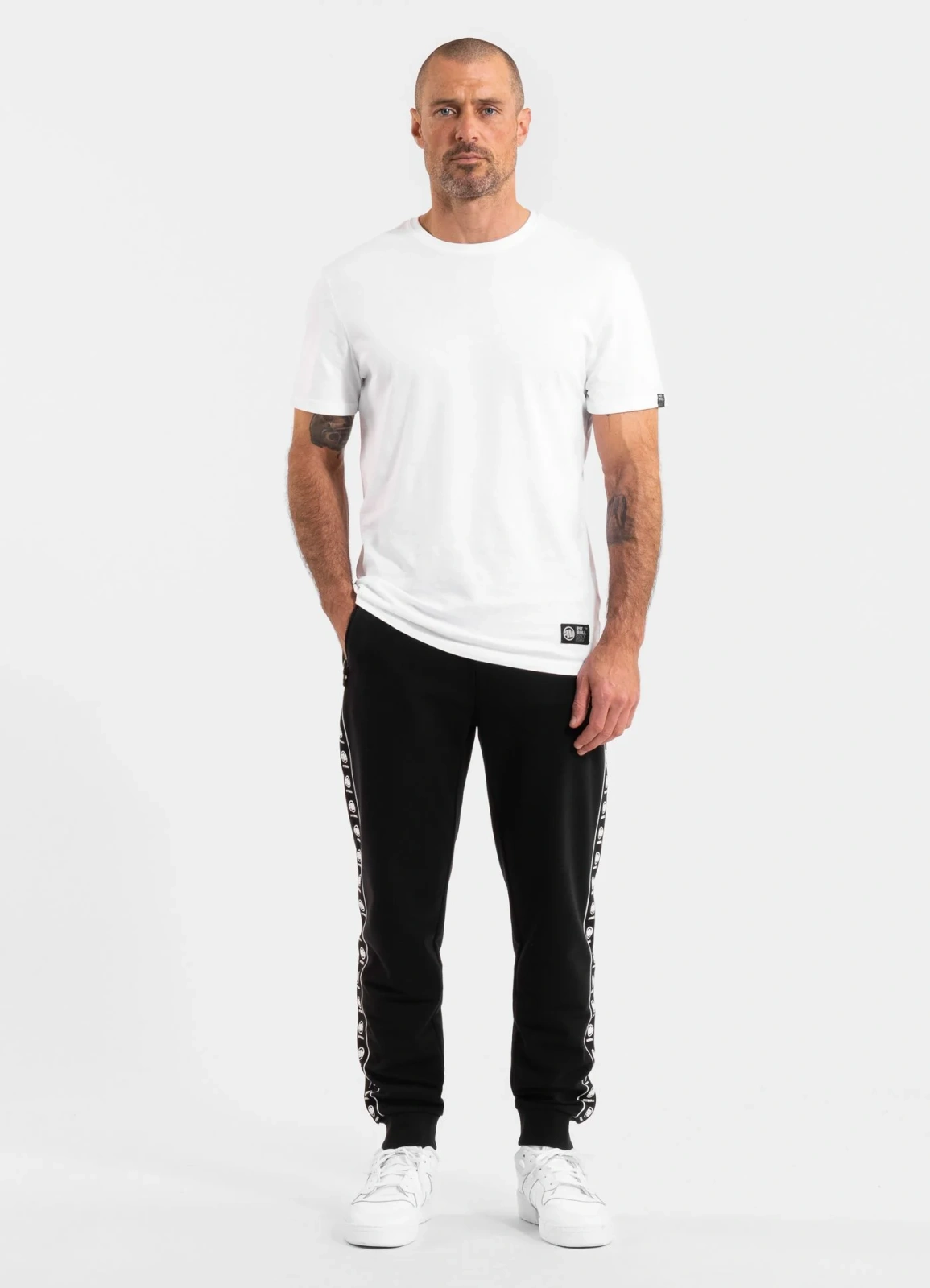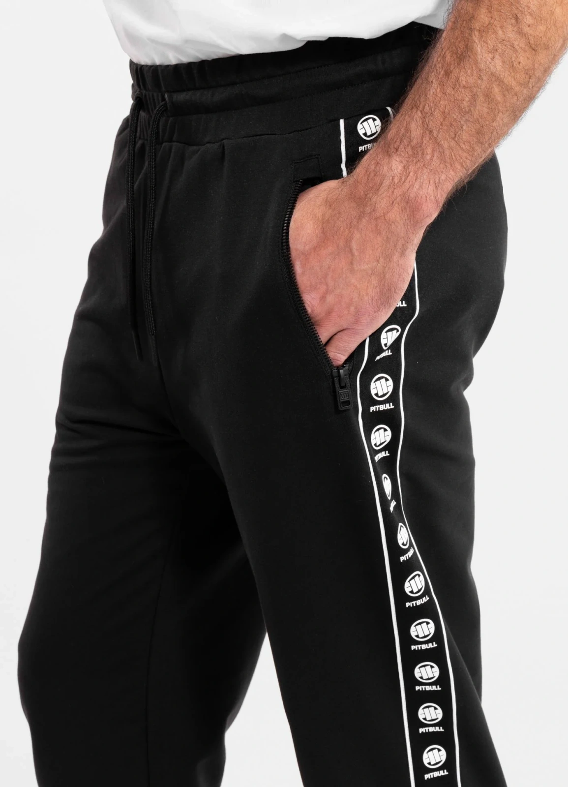 - żakardowe lampasy na całej długości nogawek z logiem i napisem PitBull