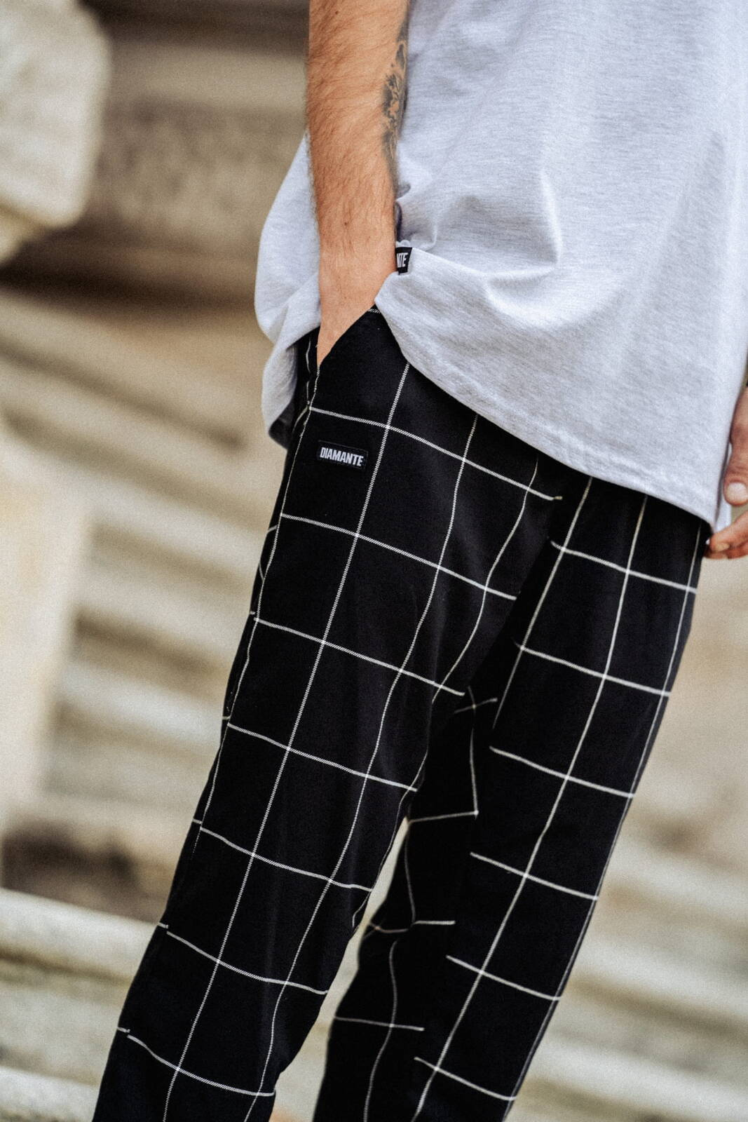 Spodnie Diamante Jogger Italy Unisex - Czarna Krata - Limitowana Edycja